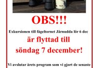 SNABBPROGRAM Tisdagen den 16 september Tranorna landar Torsdagen den 25 september Fåglar i norra Hulingen Lördagen den 4 oktober EuroBirdwatch Day Ryningen Torsdagen den 16 oktober Fåglar i norra Hulingen Söndagen den 26 oktober Gäss och örnar på Mörlundaslätten Lör 1 – Sön 2 november Allhelgonaracet Lördagen den 15 November Innekväll med bilder, käk och prat Lördagen den 6 december Fågeltornet i Järnudda Fredagen 23 – Måndagen 26 Januari 2026… Read More »